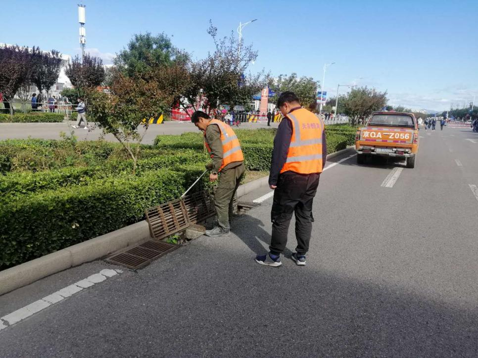 居利美保洁公司共出动664人次,对国展裕丰路、裕东路、安华街、天北路、安毓街、裕安路南段的清扫捡拾、绿化带行人步道上的白色垃圾烟头枯枝树叶和垃圾桶的清掏工作。展会期间共清扫道路及人行步道约280万平米,捡拾绿化带约152万平米,清掏垃圾桶共计768个;出动垃圾清运车3辆,共清运垃圾约128立方;出动洒水车1辆,共洒水约144立方,清扫车2辆。清扫车等每日零点开始上路作业,在国展周边主要道路进行循环清扫。